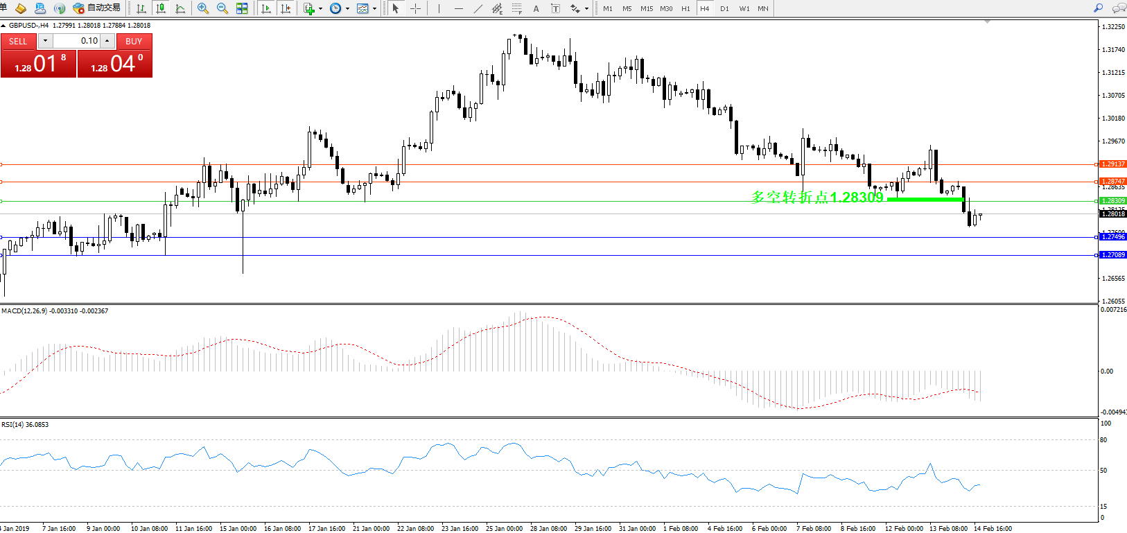 英镑美元GBPUSD ——4小时K线图显示:
