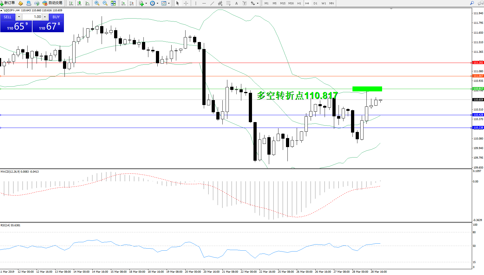 交易策略:110.817下方看跌,目标110.428110.238