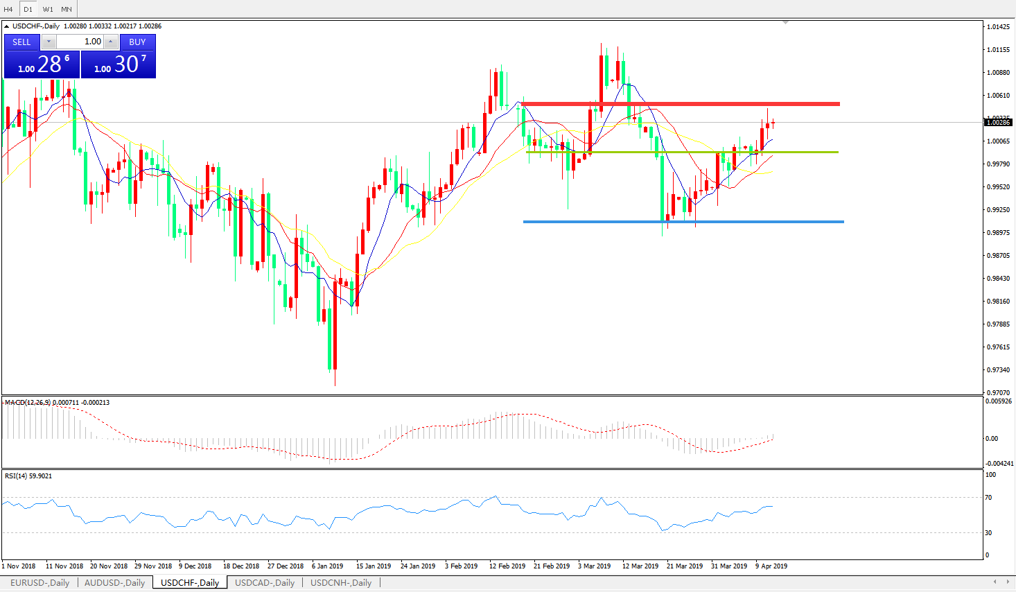 美元瑞郎USDCHF   日线图: