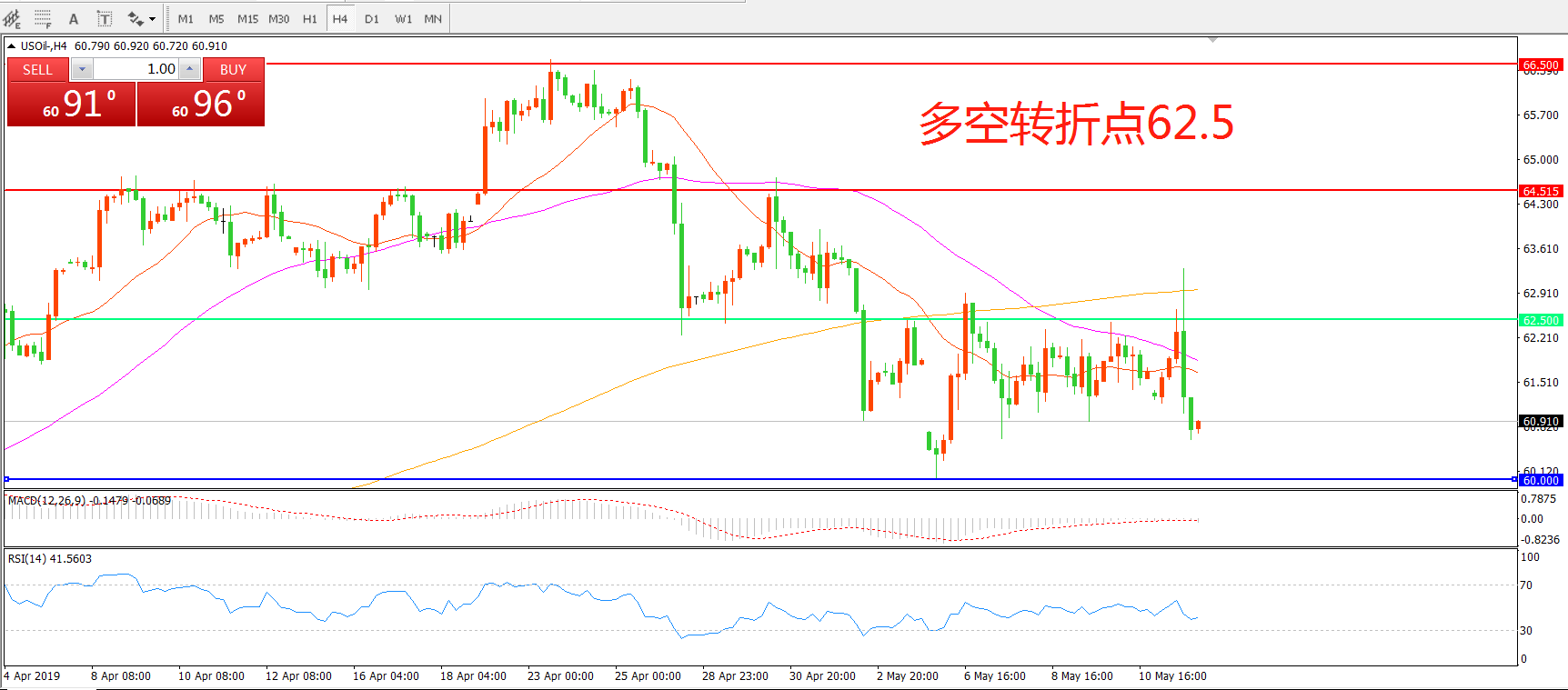 交易策略:在62.50之下看跌,目标60.00    58.00