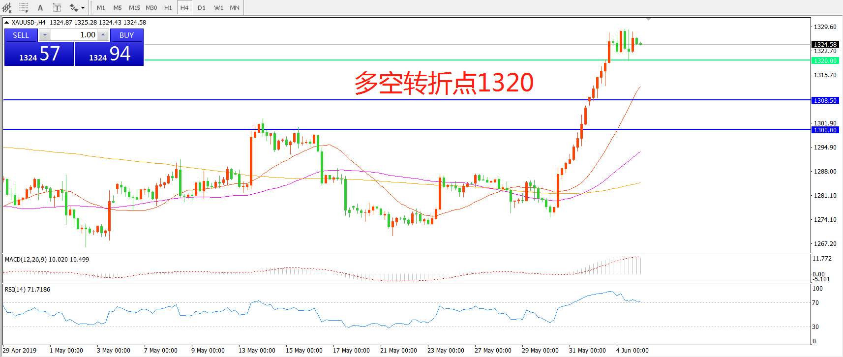 多空转折点:1320.00