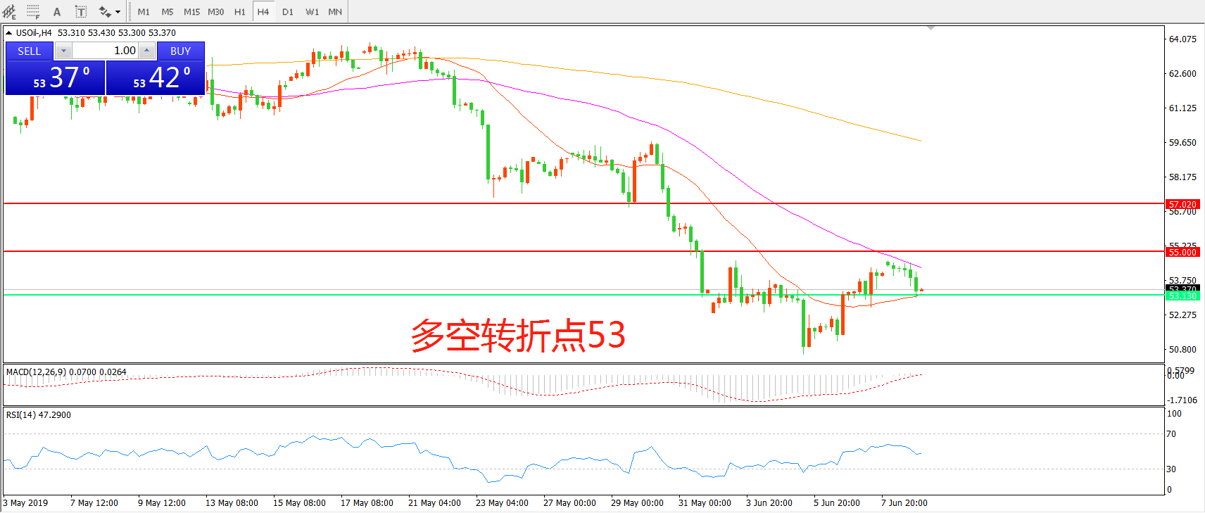 交易策略:在53.00之上看涨,目标55.00    57.00