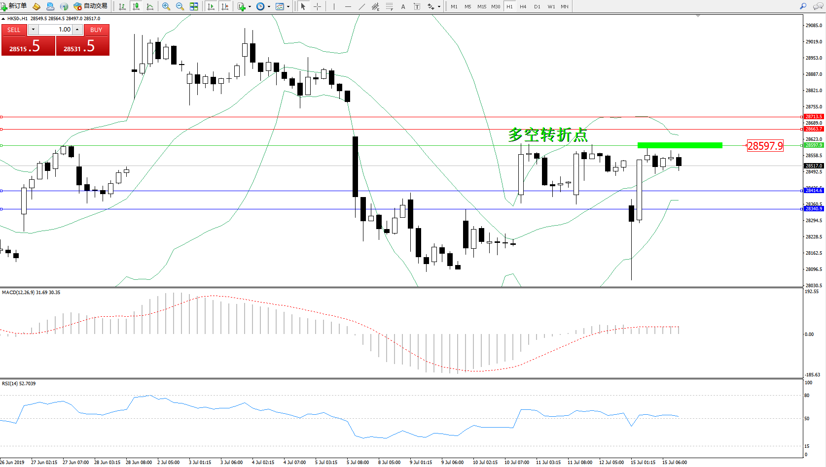 技术点评:在昨日低开低走快速V型反转上行后,维持前几日高位整理走势中,布林带指标呈收口态势,短暂企稳于中轨上方整理,MACD指标多头区域呈窄幅整理走势,RSI指标处于50均衡线上方弱势平移;