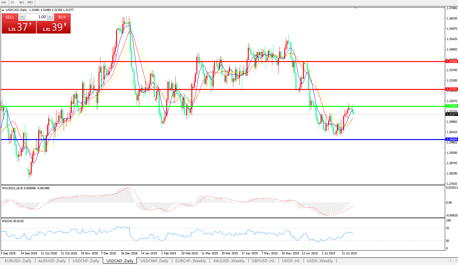 美元兑加元USDCAD    日线图:
