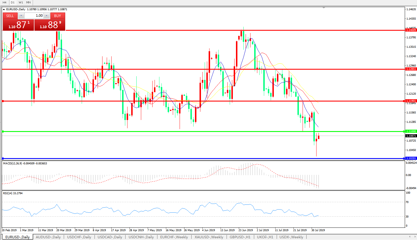 欧元兑美元EURUSD   日线图: