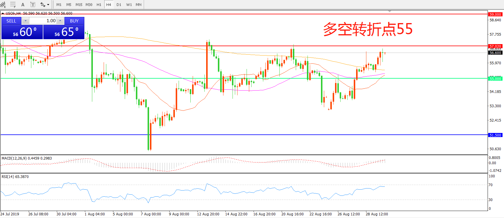 多空转折点:55.00