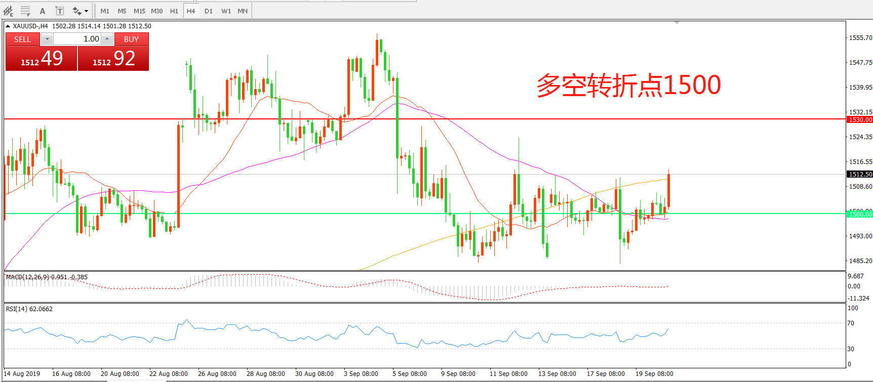 多空转折点:1500.00