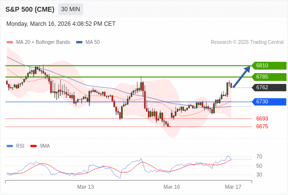 在 6730 之上,看涨,目标价位为 6785 ,然后为 6810 。