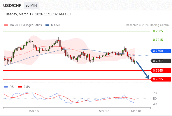 在 0.7890 之下,看跌,目标价位为 0.7845 ,然后为 0.7825 。