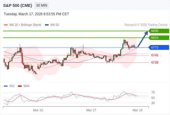 在 6773 之上,看涨,目标价位为 6810 ,然后为 6835 。