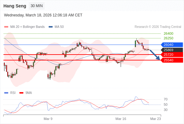 恒生指数 当日内: 目标位为25720。