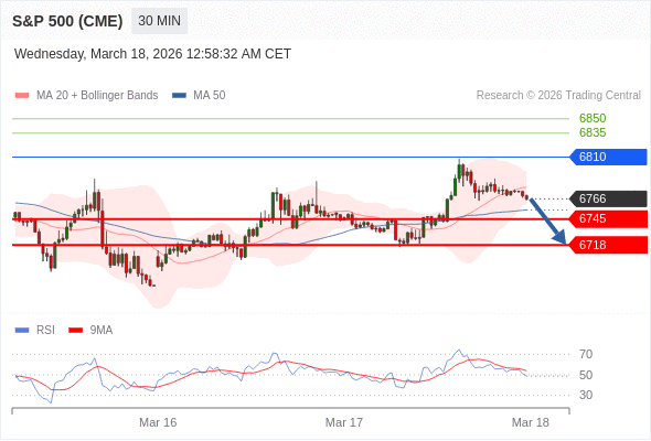 在 6810 之下,看跌,目标价位为 6745 ,然后为 6718 。