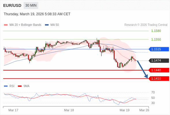 在 1.1515 之下,看跌,目标价位为 1.1440 ,然后为 1.1410 。