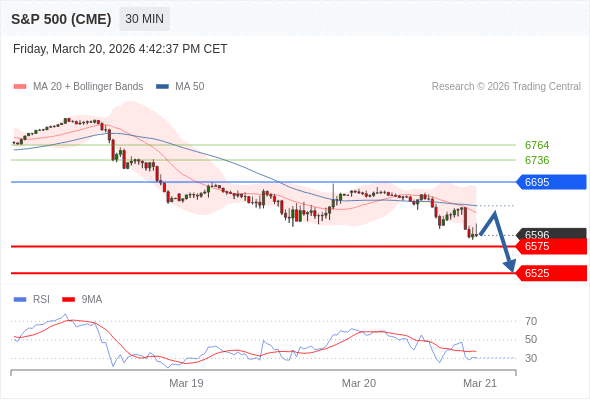 美国标普500指数期货 (M6) 当日内: 下跌趋势。