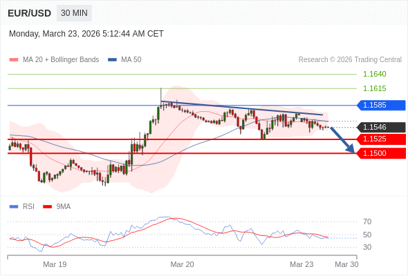 在 1.1585 之下,看跌,目标价位为 1.1525 ,然后为 1.1500 。