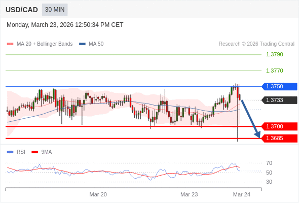 在 1.3750 之下,看跌,目标价位为 1.3700 ,然后为 1.3685 。