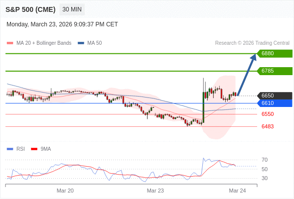 在 6610 之上,看涨,目标价位为 6785 ,然后为 6880 。