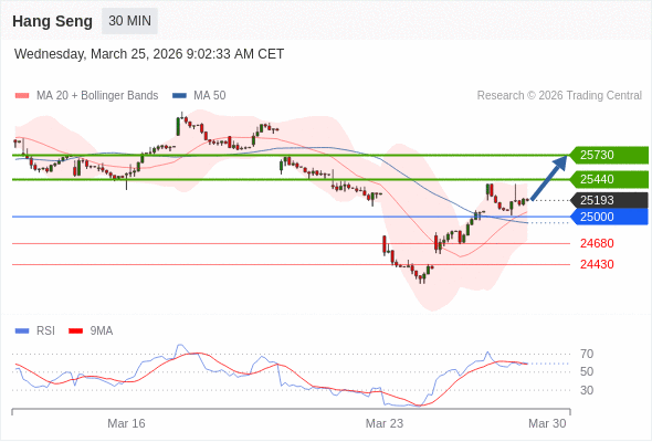 在 25000 之上,看涨,目标价位为 25440 ,然后为 25730 。