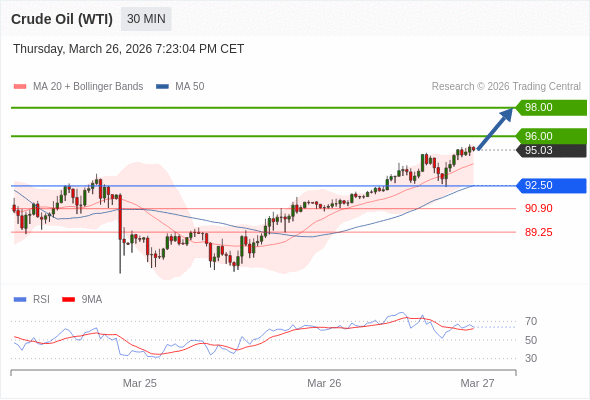 在 92.50 之上,看涨,目标价位为 96.00 ,然后为 98.00 。