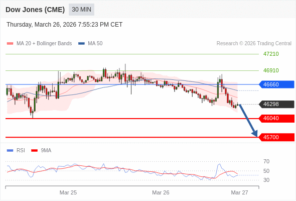 在 46660 之下,看跌,目标价位为 46040 ,然后为 45700 。