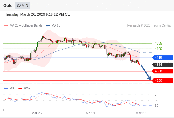 在 4415 之下,看跌,目标价位为 4300 ,然后为 4220 。