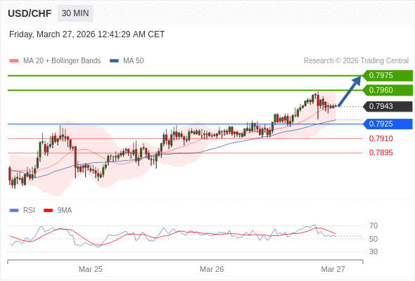 在 0.7925 之上,看涨,目标价位为 0.7960 ,然后为 0.7975 。