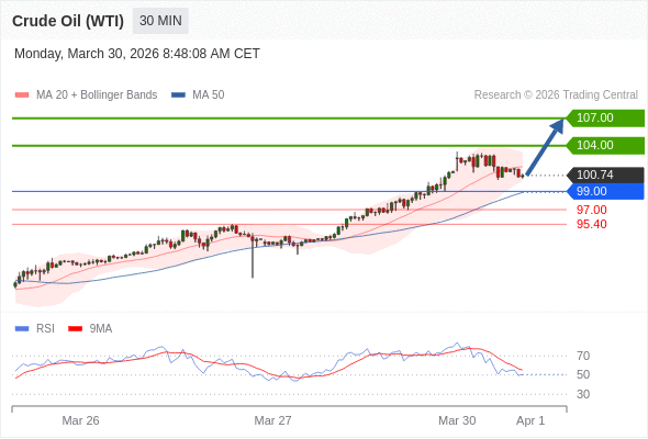 交易策略: 在 99.00 之上,看涨,目标价位为 104.00 ,然后为 107.00 。