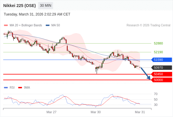 在 51590 之下,看跌,目标价位为 50450 ,然后为 50000 。