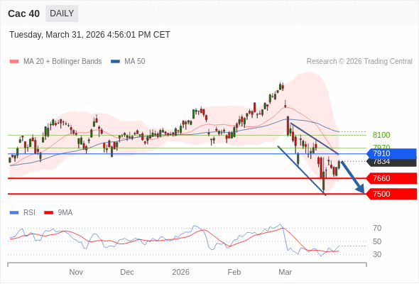 Cac 40 短线: 没有明显变化趋势。