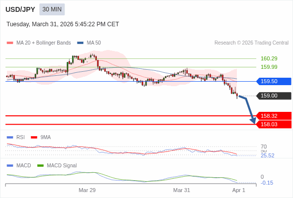 交易策略: 看跌,在 159.50 之下。