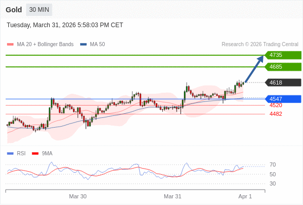 在 4547 之上,看涨,目标价位为 4685 ,然后为 4735 。