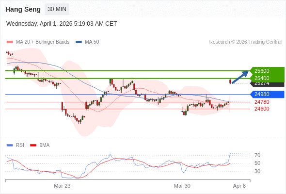 在 24980 之上,看涨,目标价位为 25400 ,然后为 25600 。