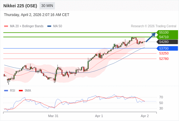 在 53700 之上,看涨,目标价位为 54710 ,然后为 55100 。