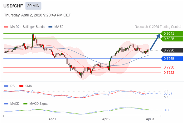 交易策略: 看涨,当 0.7965 为支撑位,目标定在0.8041。