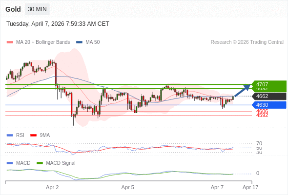 备选策略: 如跌破 4630 ,Gold 目标方向定在 4606 和 4592 。