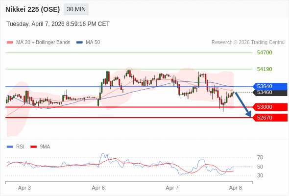 在 53640 之下,看跌,目标价位为 53000 ,然后为 52670 。
