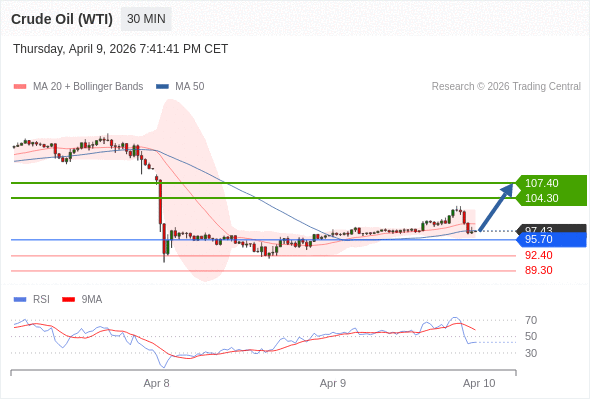 在 95.70 之上,看涨,目标价位为 104.30 ,然后为 107.40 。