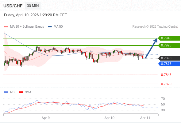 在 0.7875 之上,看涨,目标价位为 0.7925 ,然后为 0.7945 。