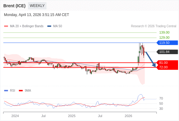 交易策略: 在 119.50 之下,看跌,目标价位为 81.00 ,然后为 72.00 。