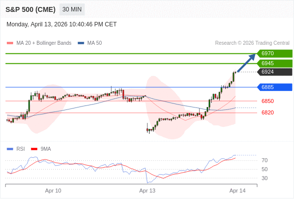 在 6885 之上,看涨,目标价位为 6945 ,然后为 6970 。
