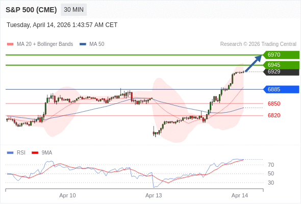 在 6885 之上,看涨,目标价位为 6945 ,然后为 6970 。