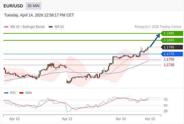 交易策略: 在 1.1770 之上,看涨,目标价位为 1.1820 ,然后为 1.1845 。