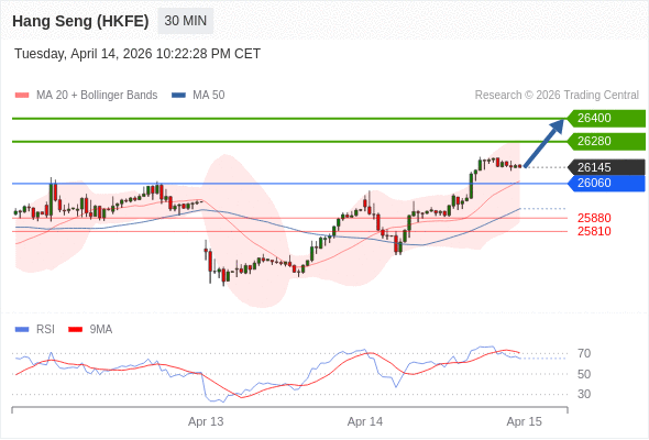 在 26060 之上,看涨,目标价位为 26280 ,然后为 26400 。
