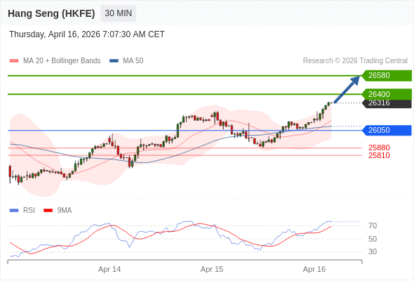在 26050 之上,看涨,目标价位为 26400 ,然后为 26580 。
