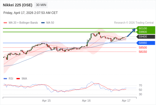 在 58880 之上,看涨,目标价位为 59800 ,然后为 60100 。