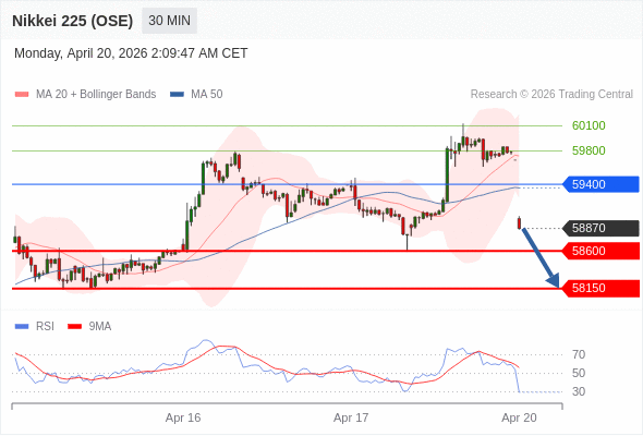 在 59400 之下,看跌,目标价位为 58600 ,然后为 58150 。