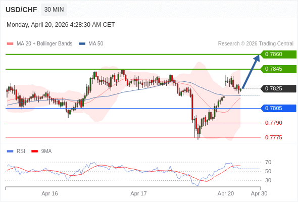 在 0.7805 之上,看涨,目标价位为 0.7845 ,然后为 0.7860 。