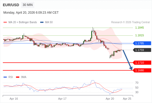 交易策略: 在 1.1785 之下,看跌,目标价位为 1.1710 ,然后为 1.1680 。