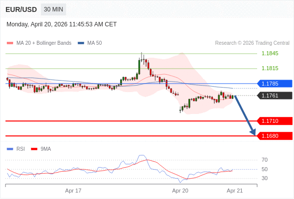 在 1.1785 之下,看跌,目标价位为 1.1710 ,然后为 1.1680 。