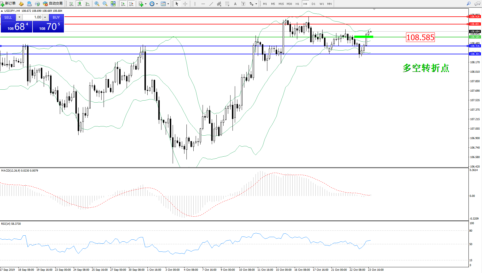 美元兑日元跌0.18%,报108.65,无协议脱欧风险下降,此前英国首相约翰逊表示,如果欧盟批准英国脱欧延期至2020年1月底,那么此后英国重新举行大选将在所难免。而隔夜,在英国议会否决了首相约翰逊提出的脱欧时间表之后,脱欧进程前景再添变数,全球市场此前一度高度乐观的情绪也因之再趋恶化,这令避险货币日元再度迎来买需,避险日元一度受宠。投资者也正在期待全面贸易环境领域的进一步积极前景,在此状况下,美元兑日元在108关口仍有强支撑,整体区间震荡的格局,尚需更大力度的基本面突发消息变动,才能得以击破。
